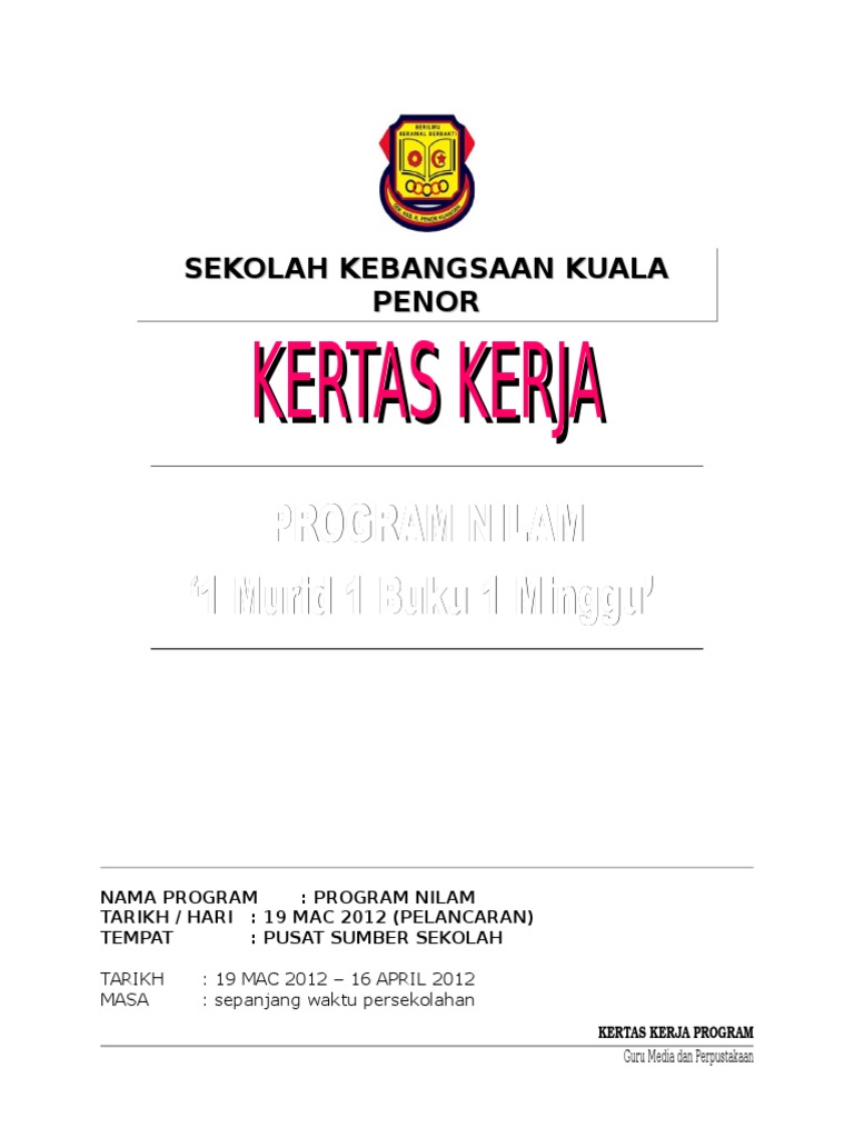 71 Masa 710 pagihingga 730 pagi. Interested in flipbooks about Kertas Kerja Pelancaran Nilam 2020. KERTAS KERJA PROJEK KHAS TAHUNAN PROGRAM PELANCARAN AKTIVITI NILAM NADI ILMU AMALAN MEMBACA 2015.