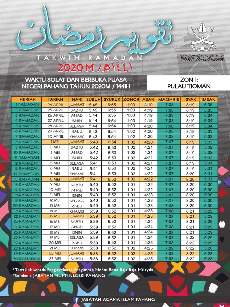 Jadual Berbuka Puasa Imsak Dan Solat Zon 4 Bentong Raub Dan Kuala Lipis 2020