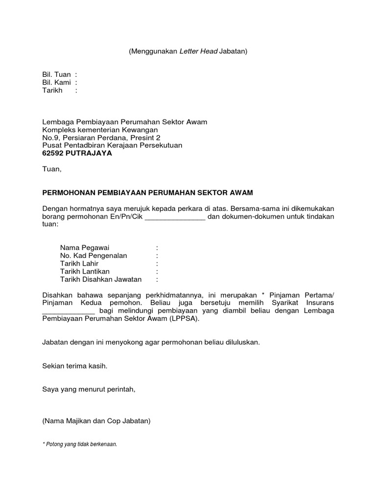 . Lppsa bagi sektor awam mulai 1. Surat iringan ketua jabatan permohonan bpp. Surat resign kerja resmi.