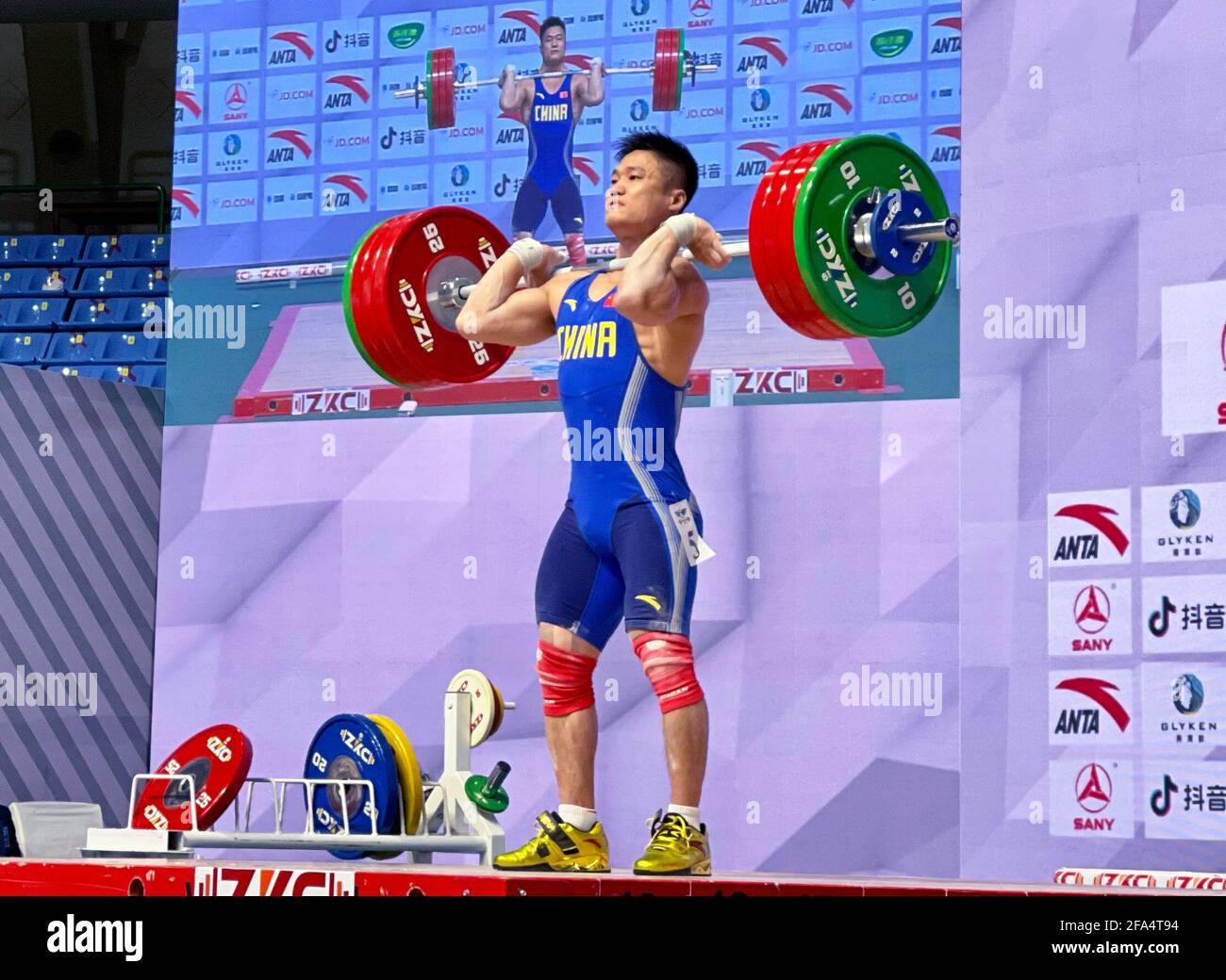 Tashkent 21st Apr 2021 Lyu Xiaojun Of China Competes During The Men S 81kg Match At The Asian Weightlifting Championships In Tashkent Capital Of Uzbekistan April 21 2021 Lyu Broke The Snatch World